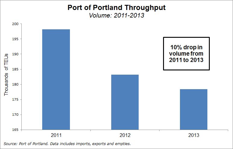 dropped to 178,451 20-foot container units in 2013 from 198,179 in 2011, according to port statistics.